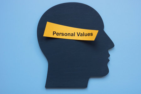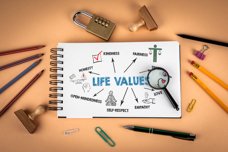 Life Values Mind Map Concept with Notepad and Office Supplies on Colored Desk Background
