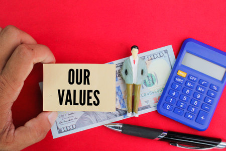 calculators, pens, paper money and miniature people with our Value words. Our value concept
