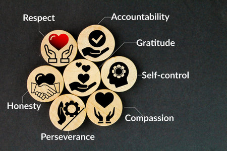 Core Values, business ethics motivational inspirational quotes, words typography concept