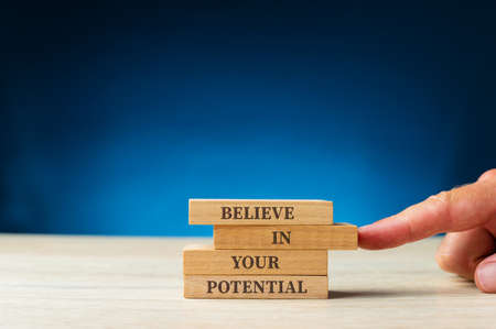 THINK POSITIVE, FEEL POSITIVE and LIVE POSITIVE on the wooden blocks. Lifestyle concept.