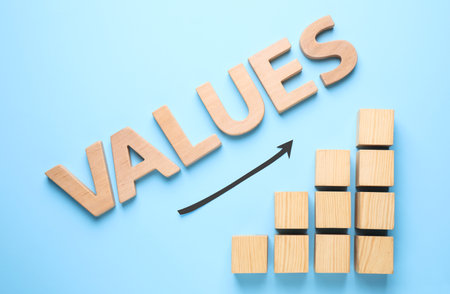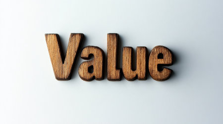 The word Value is crafted from wood and prominently displayed against a light background, highlighting its significance in a simple yet impactful design.