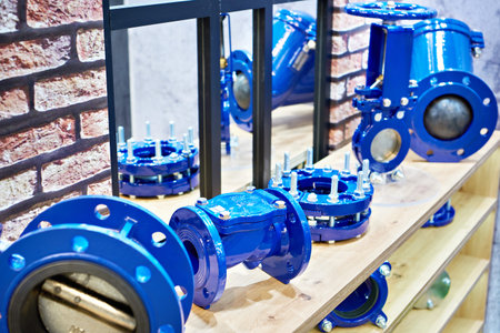 Gate valves, couplings and shut-off devices for water supply systems at an industrial exhibition