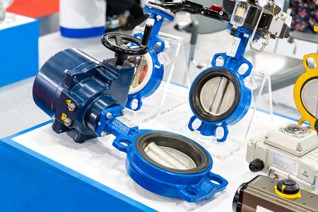 electric actuator assembly with metal butterfly valve for turn close and open liquid conveying system in industrial on table