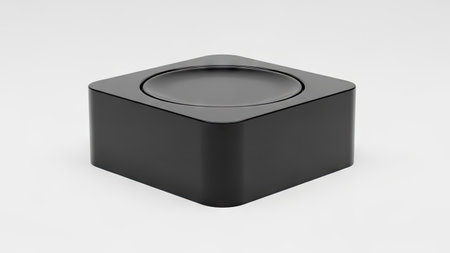 3d rendering of a black square box isolated in white studio background