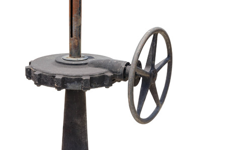 close-up mechanical gear with a large toothed wheel of Floodgate valve with color Effect