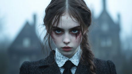 Striking portrait of a gothic woman with dramatic makeup and dark attire