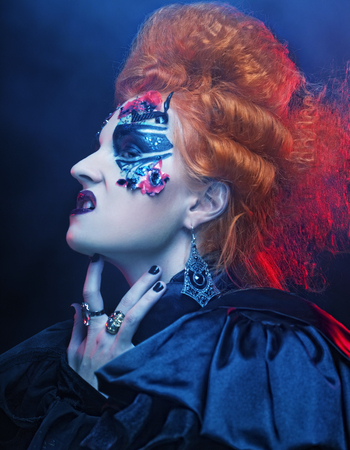 Gothic redhair witch. Dark woman.Halloween picture.