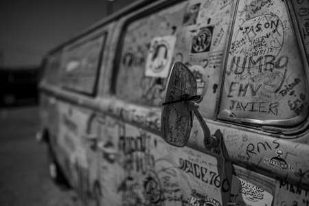 Port Adelaide, Australia - March 10, 2019: Classic Volkswagen camper van parked on a street near graffiti wall