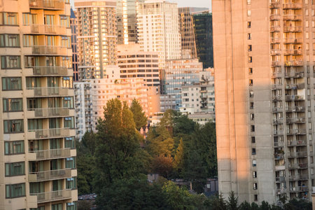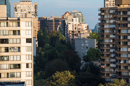 Cityscape office buildings with modern corporate and residential architecture. Urban cityscape skyline on a sunny day in Vancouver Canada. Travel photo-May 24,2023