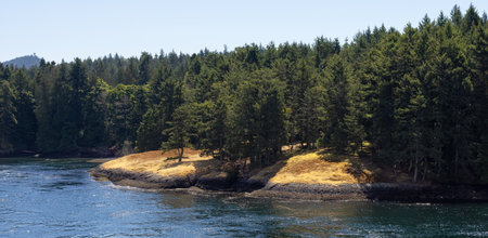 Canadian Landscape by the ocean and mountains. Summer Season. Gulf Islands near Vancouver Island, British Columbia, Canada. Canadian Landscape.