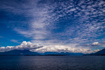 Haro strait view from Vancouver island with cloudy sky British Columbia Canada