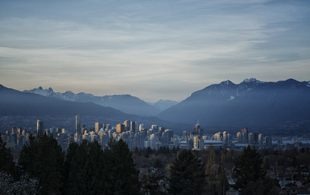 Blue city of Vancouver in winter with nature around
