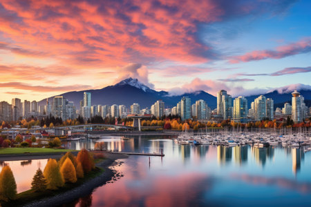 Vancouver Skyline at sunset, Vancouver, America, Beautiful view of downtown Vancouver skyline, British Columbia, Canada, AI Generated