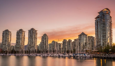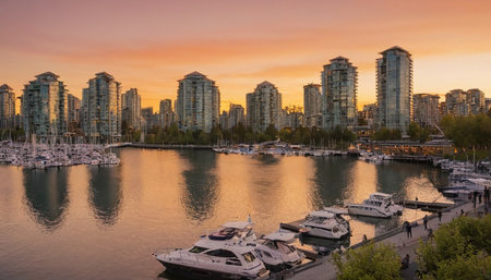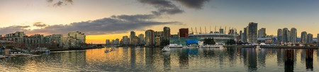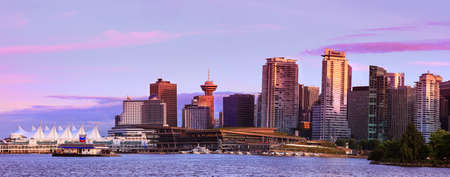 Downtown Vancouver skyline, cityscape of British Columbia in Canada at sunset