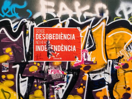 Barcelona, Spain - Nov 16 2017: Barcelona street scene with anti Catalan referendum placard