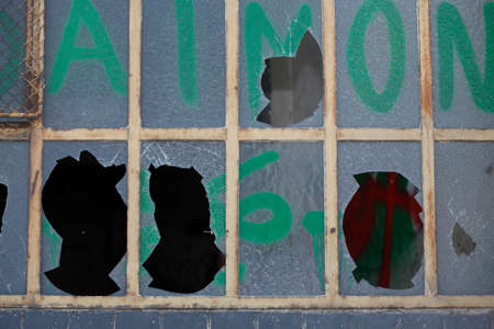 Barcelona, Spain, December 23, 2017: Broken windows on Streets of Barcelona.