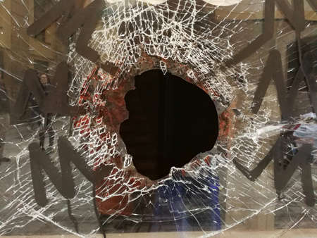 photo broken window looks like a bullet hole