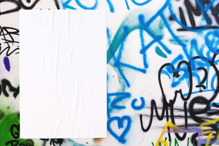 colorful urban wall texture with wrinkled glued poster template