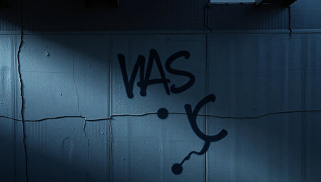 Graffiti on a wall with the word WAS written in it