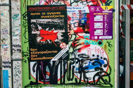 Athens, Greece - November 22, 2021 Street art in Athens, graffiti that covers the whole city, where every alley, shop front, brick wallis an artistic canvas, of political reference or of social satire