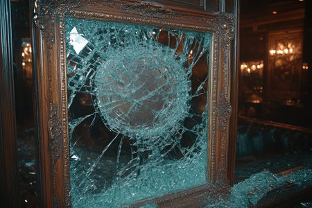 destruction bullet fired illustration shattered glass, aftermath power, velocity trajectory destruction bullet fired