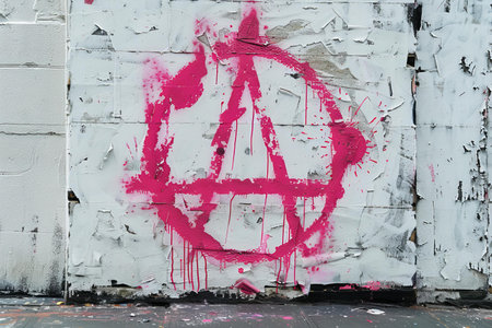 A bathroom with graffiti on the wall and a sink, AI