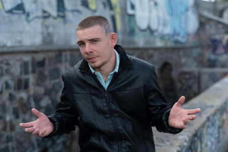 portrait of young man in defiant street