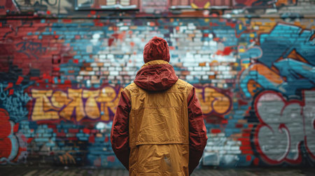 A man standing in front of a graffiti covered wall. Generative AI image.