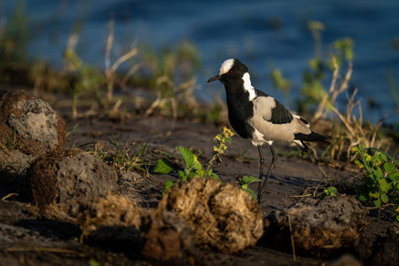 Blacksmith lapwing on riverbank by elephant dung