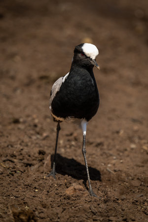 Blacksmith lapwing walks in sunshine cocking head