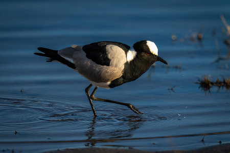 Blacksmith lapwing with catchlight wades through shallows