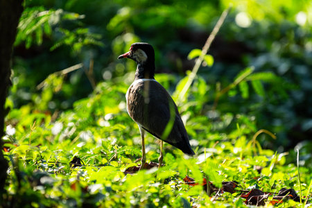red-wattled Lapwing (Vanellus indicus) on the ground in the garden