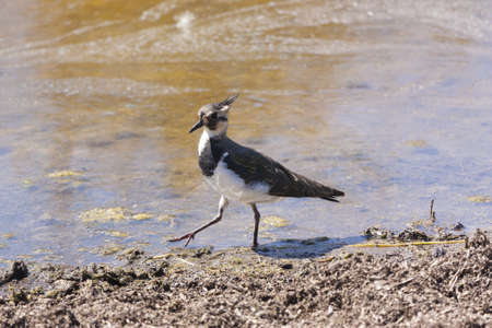 Lapwing walking along the bank of a lagoon