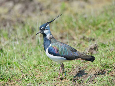 Northern lapwing. Vanellus vanellus standing on grassland in Villafafila wetlands