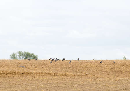 Northern lapwing - Vanellus vanellus - A species of medium-sized migratory bird, a swamp bird with black-and-white plumage, a small flock flies low in the sky on a sunny summer day.