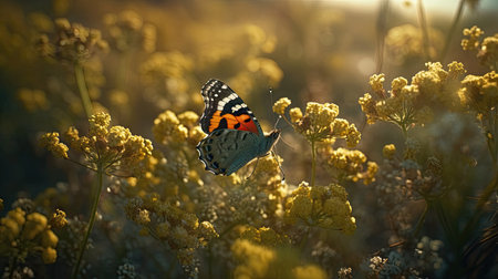 Illustration of a butterfly perched on a beautiful flower, beautiful