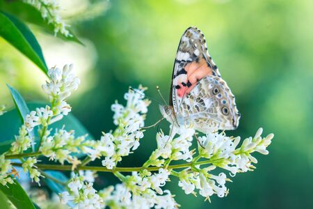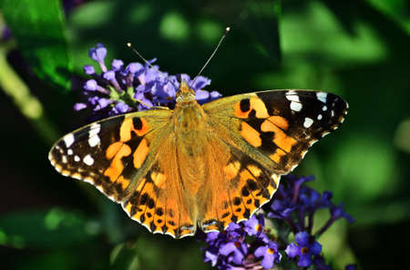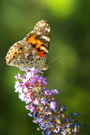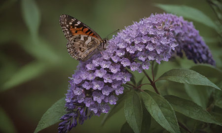 painted lady butterfly on buddleja davidii flower, beautiful butterfly on summer lilac