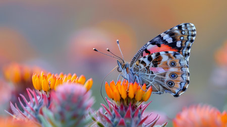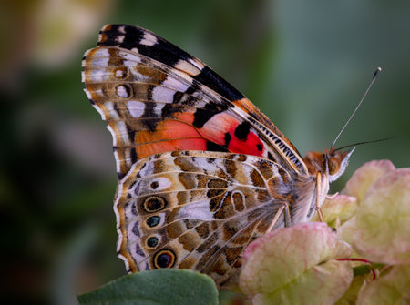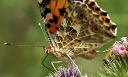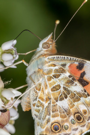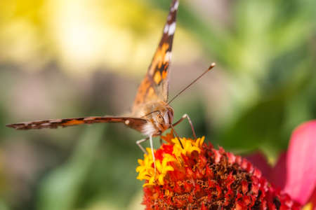 Painted Lady butterfly, Vanessa Cardui, closeup feeding nectar.
