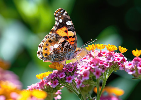 Beautiful image in nature of monarch butterfly on lantana flower.