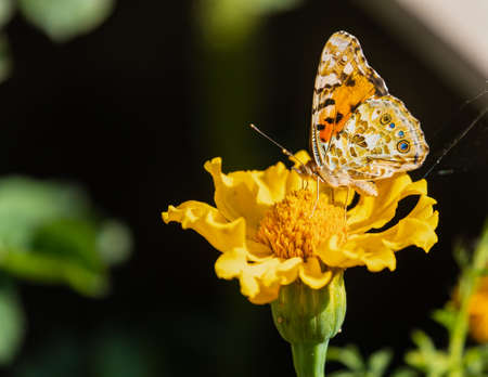 Painted lady butterfly on a marigold flower