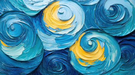 Swirling abstract background showcases vibrant blue and yellow tones, creating a dynamic visual experience ideal for artistic and creative projects
