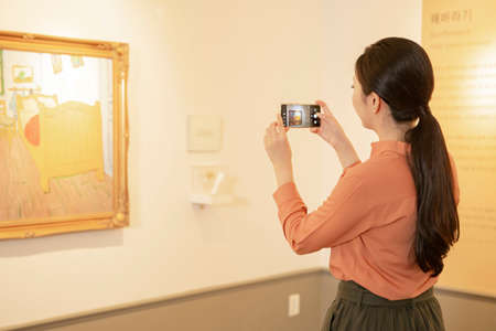Utilizing smartphone technology to capture vibrant contemporary artwork in a modern gallery exhibition