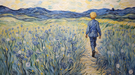 the painting captures the essence of van gogh's memories in brabant, with vibrant colors and expressive brushstrokes. displaying a melodic blend of nostalgia and artistic brilliance. vincent van gogh is immortalized in this artwork, reflecting his deep emotional connection to his homeland in brabant. ai generated