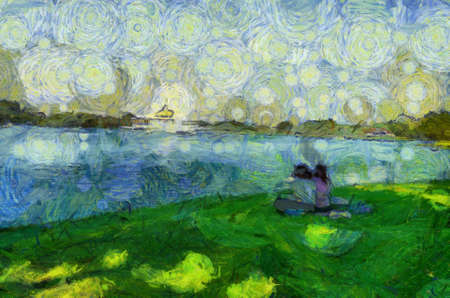 Park landscape Illustrations creates an impressionist style of painting.