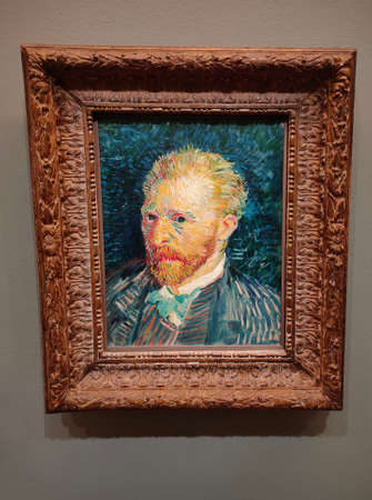 Paris, France - December 30, 2021: Self-Portrait by Vincent van Gogh painting in Museum d'Orsay in Paris, France.