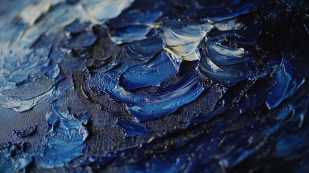 A close-up view of an abstract blue ocean painting, showcasing rich textures and vibrant colors. Ideal for conveying creativity and artistic expression.