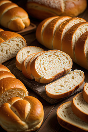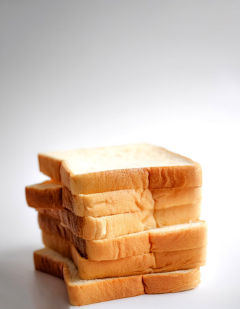 Delicious bread slices on side position provides copy space for text. background concept isolated light white background