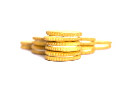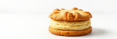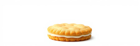 Delicious cream-filled biscuit resting on a white background inviting a tempting snack moment