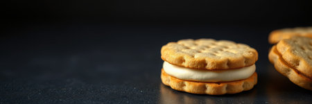 Cream-filled cookies arranged on a dark surface with a focus on texture and color contrast