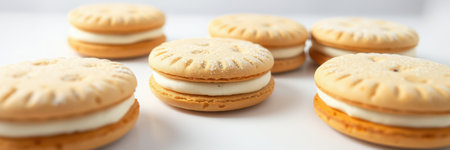 Delicious cream-filled cookies arranged on a white surface ready for a sweet treat experience